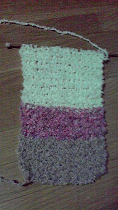 ① まず、ガーター編みで、マフラーを作るように